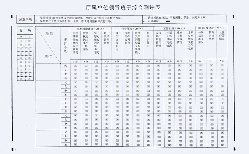 《通用民主測評系統(tǒng)軟件》對現(xiàn)行領(lǐng)導(dǎo)干部和班子考核測評體系進行科學(xué)的豐富和擴充,形成的一套高度智能化考核軟件系統(tǒng)。系統(tǒng)實現(xiàn)了考核管理工作的數(shù)字化,提高了考核測評的科學(xué)性、合理性和準確性。 系統(tǒng)充分運用了現(xiàn)代化信息技術(shù)成果,通過考核人員填涂測評表,采用先進的高速掃描儀以及識別技術(shù)進行考評信息錄入并結(jié)合網(wǎng)絡(luò)在線投票的方式,解決以往測評中大量數(shù)據(jù)采集的瓶頸問題,可快速完成上千張測評表的錄入、分析及處理工作,比手工操作速度快數(shù)百倍,且數(shù)據(jù)準確無誤,解決了人為唱票干擾問題,并可反復(fù)統(tǒng)計、校驗。使用益處: